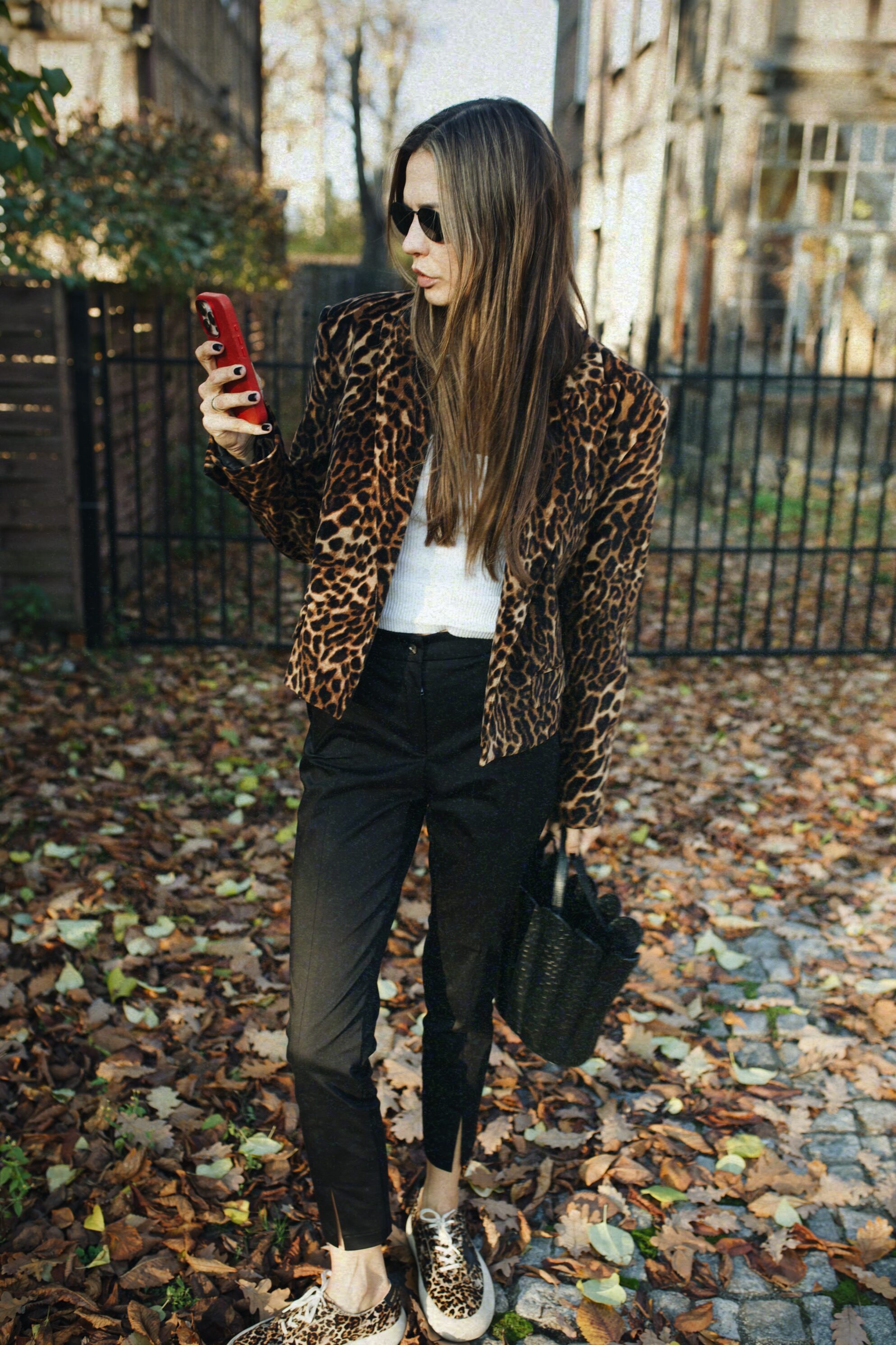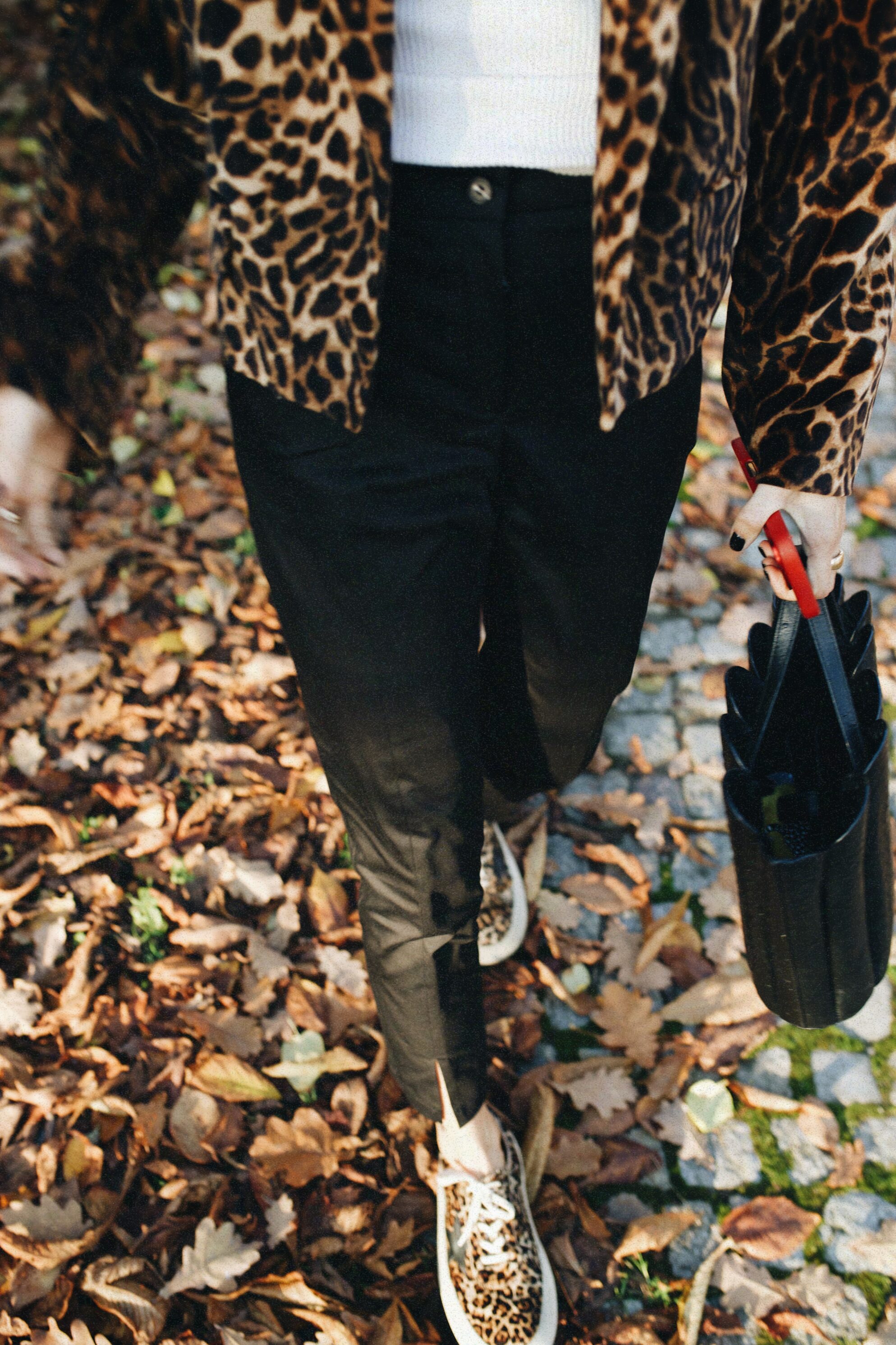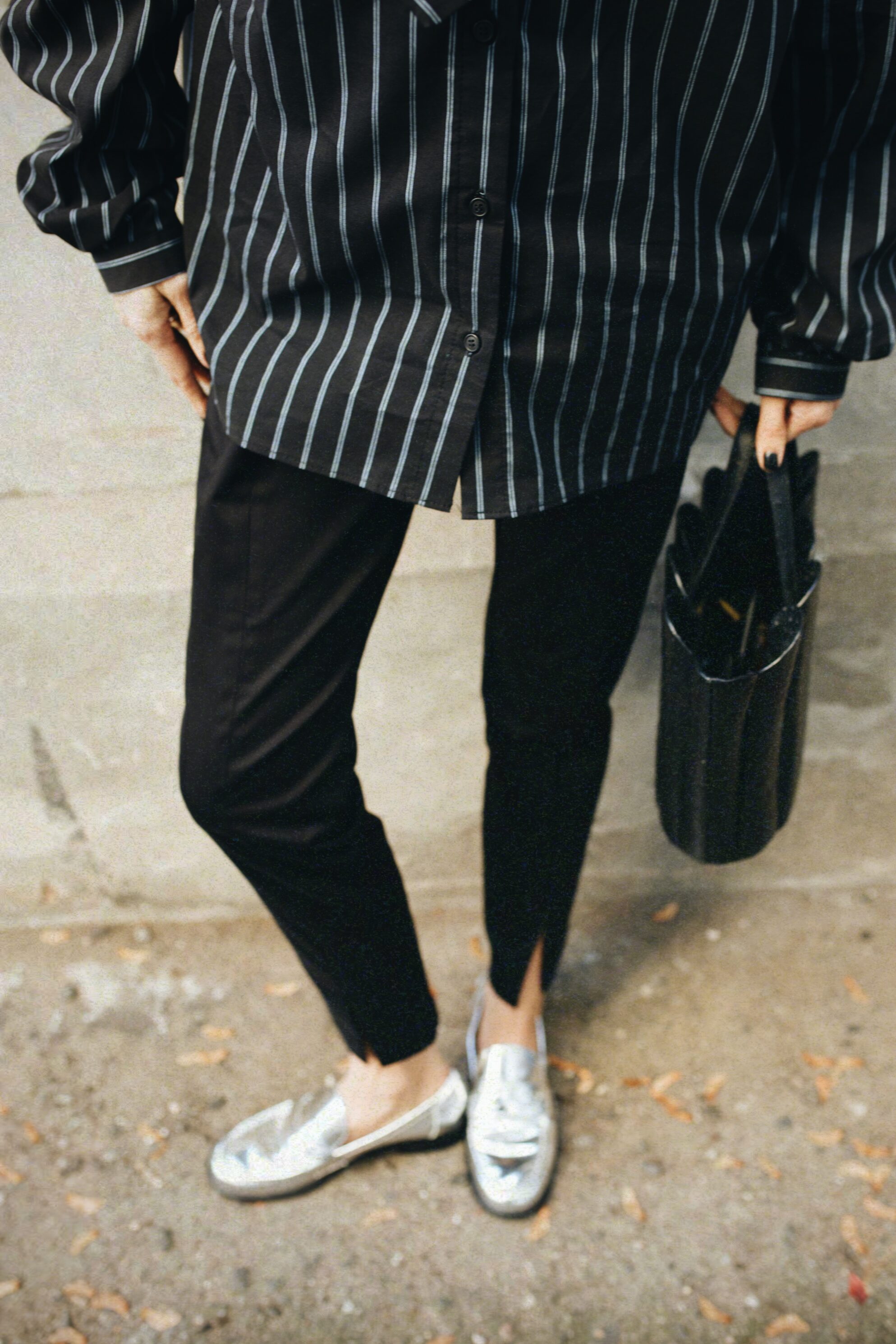 Cechy: zamek w pasie, rozcięcia na nogawkach